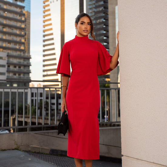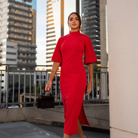 Command the room in this striking red midi dress—where elegance meets pure confidence. Designed with a refined, body-skimming silhouette, it highlights your shape with sophistication while the bold red hue delivers instant impact. The mid-length cut adds a touch of timeless class, making it perfect for upscale events, special nights, or any moment you want to feel unstoppable.