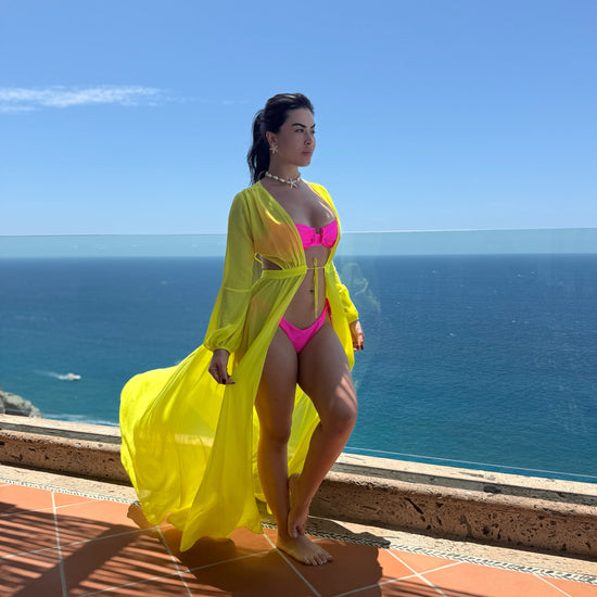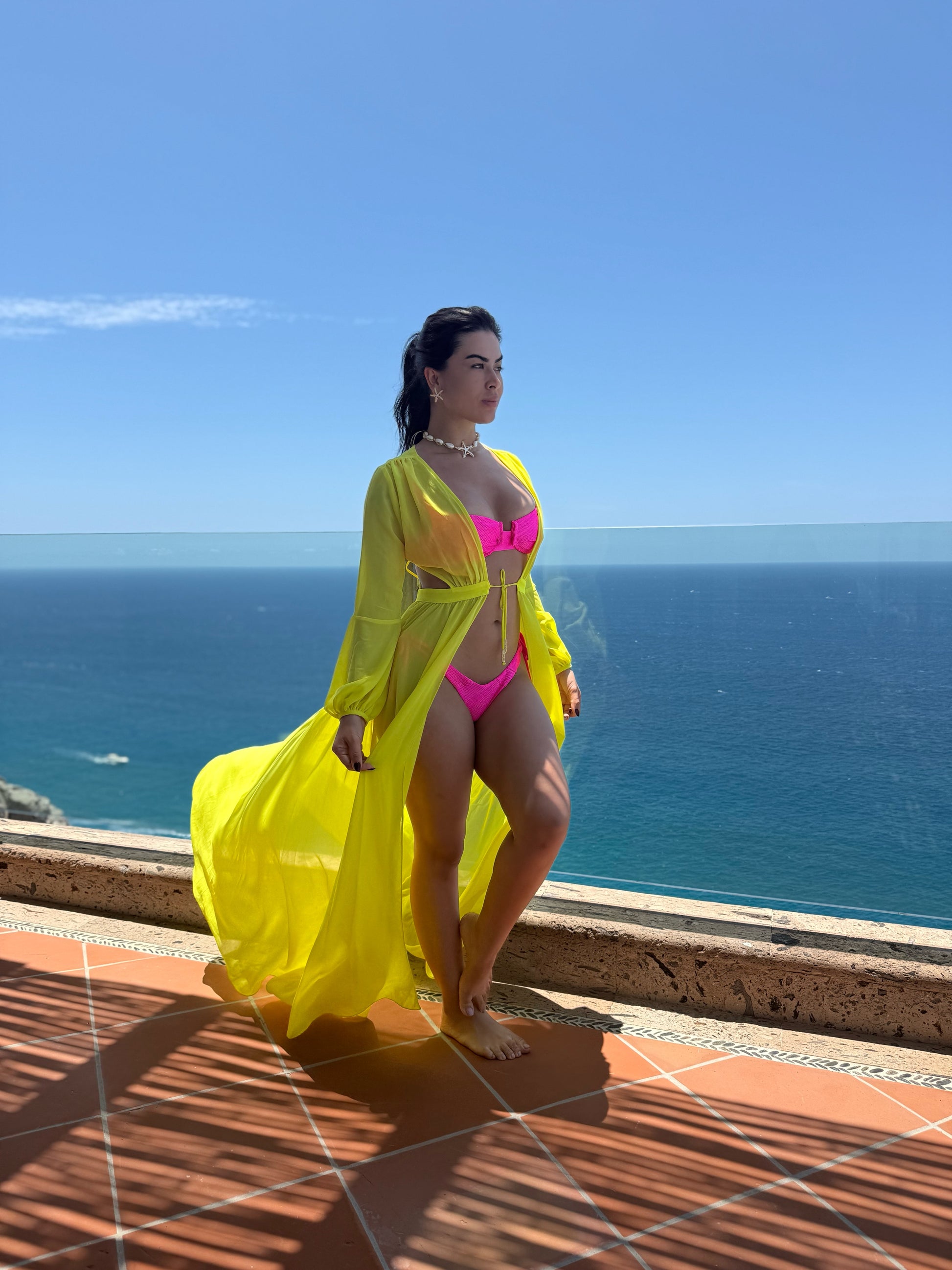 Turn heads with this ultra-flattering hot pink bikini set. Featuring a structured balconette-style top with bold straps and a front knot detail for lift and support, paired with adjustable tie-side bottoms that hug your curves just right. Made from textured fabric with a luxe finish — this is your statement swimwear for golden hour moments and boat days under the sun. Bold, confident, and ready for the spotlight.