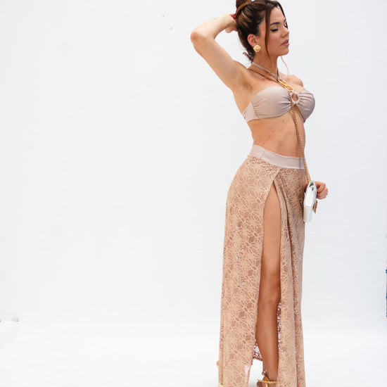 Sunlit Lace Beach Skirt – Nude Elegance