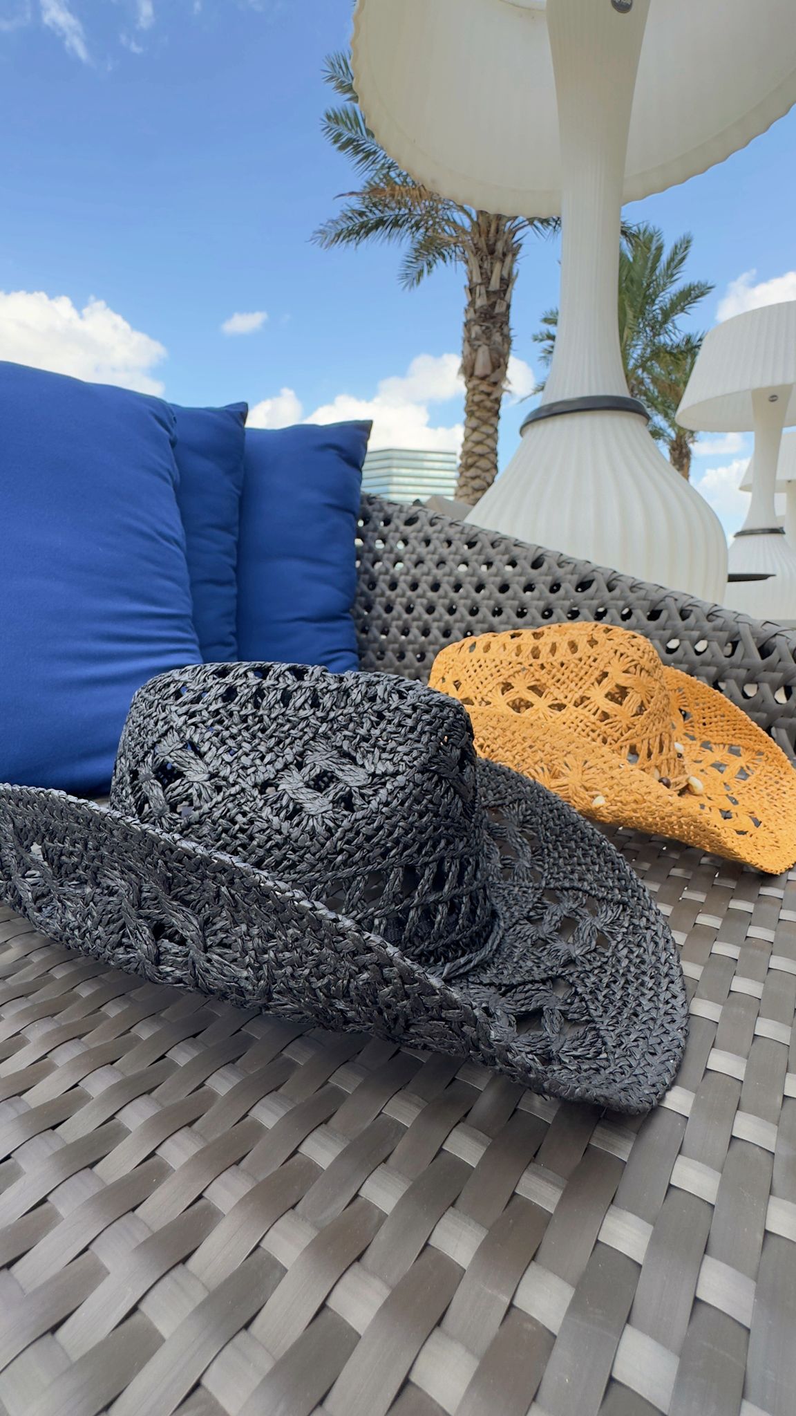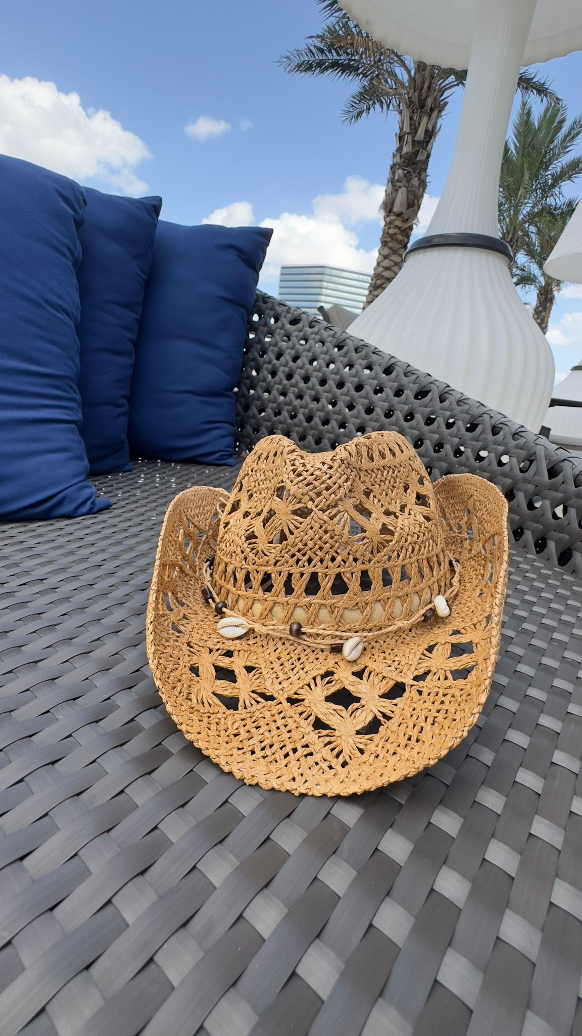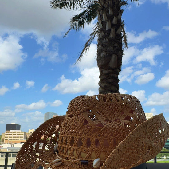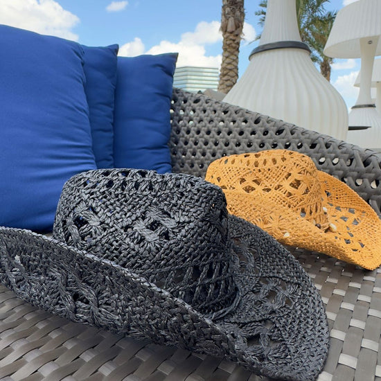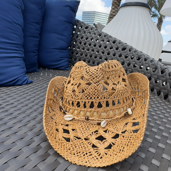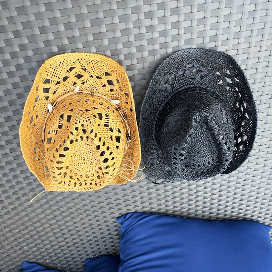 Sun-kissed style meets artisan charm with our Texas Crochet Straw Hat, available in black and natural tan. Handcrafted with an open-weave crochet pattern, this hat offers breathable coverage and a stylish edge, perfect for beach days, resort lounging, or festival flair. The natural version features delicate cowrie shell details, adding a coastal-chic vibe to your look. Lightweight, flexible, and easy to pack, it’s your must-have sun accessory of the season.